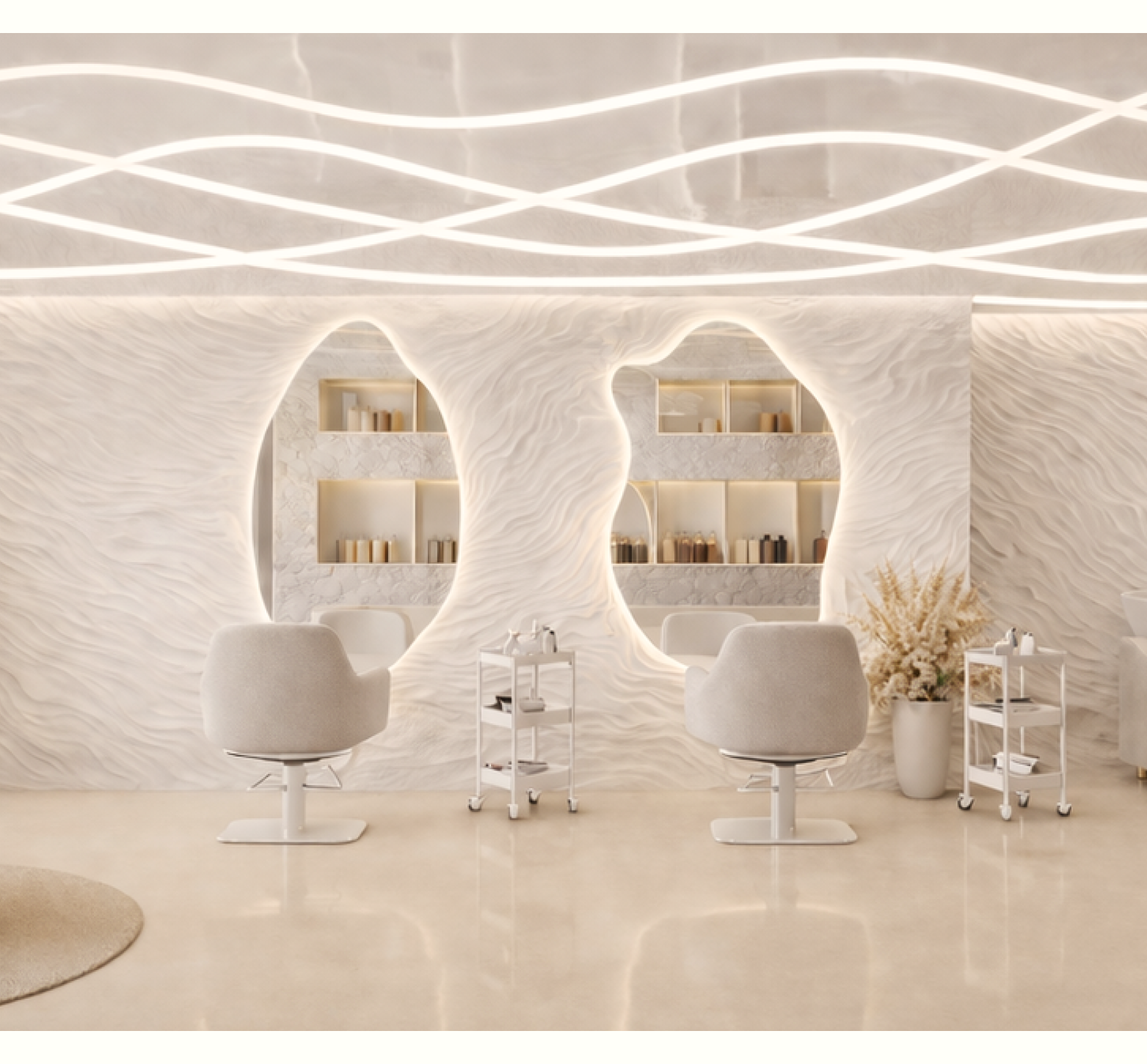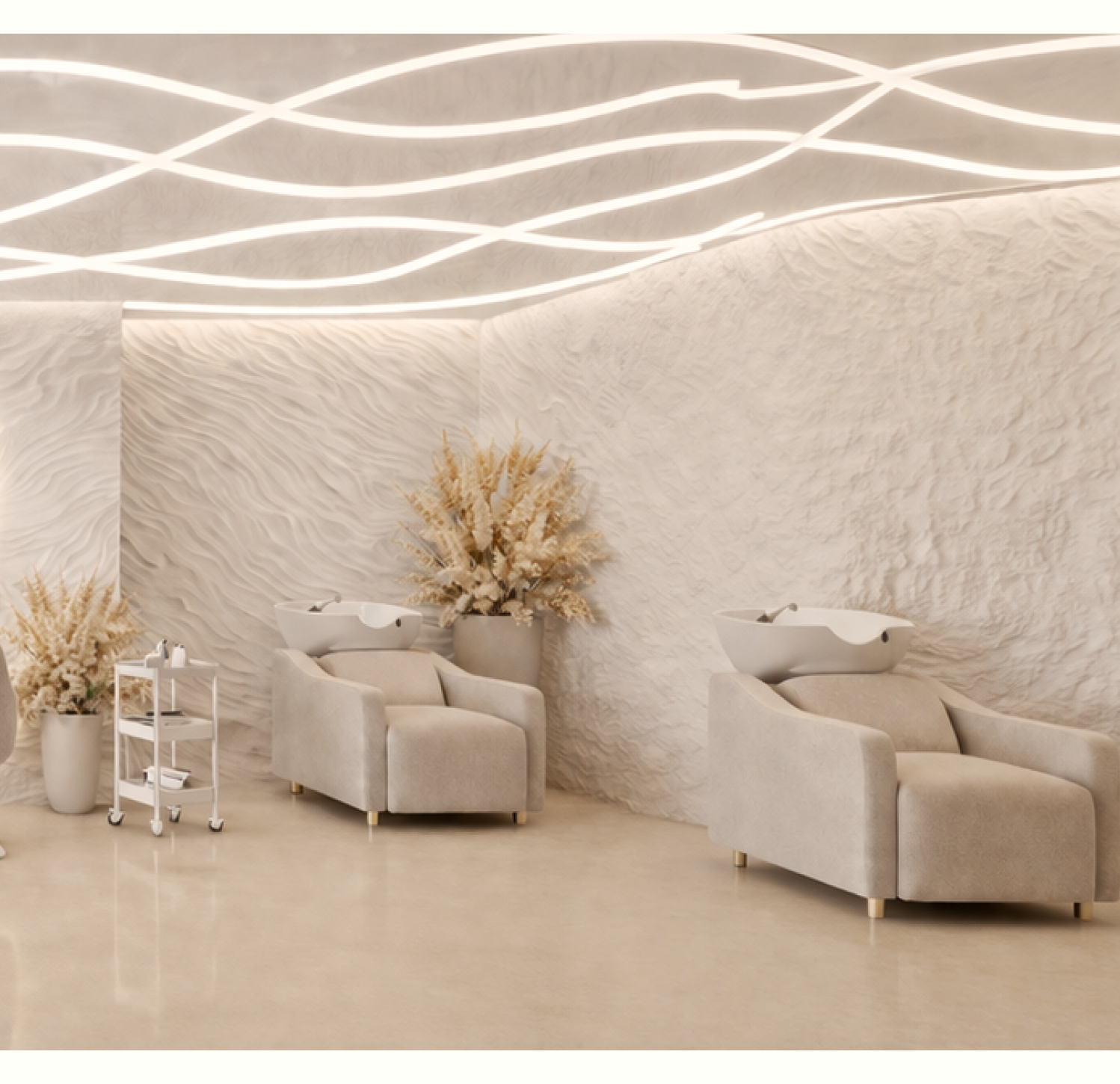 Navrhli jsme koncepční studii kadeřnického salonku do Prahy.  Salonek bude jemný, světlý, ale útulný. Bude v přírodních zemitých tónech.